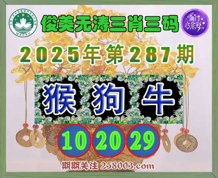 287期:〖俊美无涛〗 🧣三肖三码🧣【狗牛】【10.20.29】开:猴34