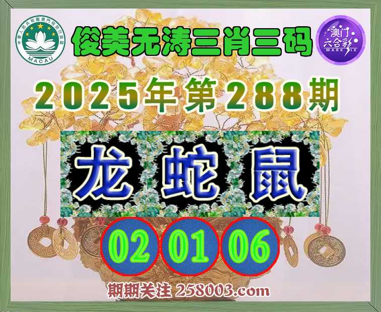 288期:〖俊美无涛〗 🧣三肖三码🧣【蛇鼠】【02.01.06】开:龙14