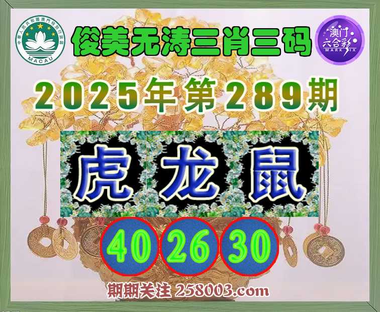 289期:〖俊美无涛〗 🧣三肖三码🧣【虎龙】【40.26.30】开:鼠42
